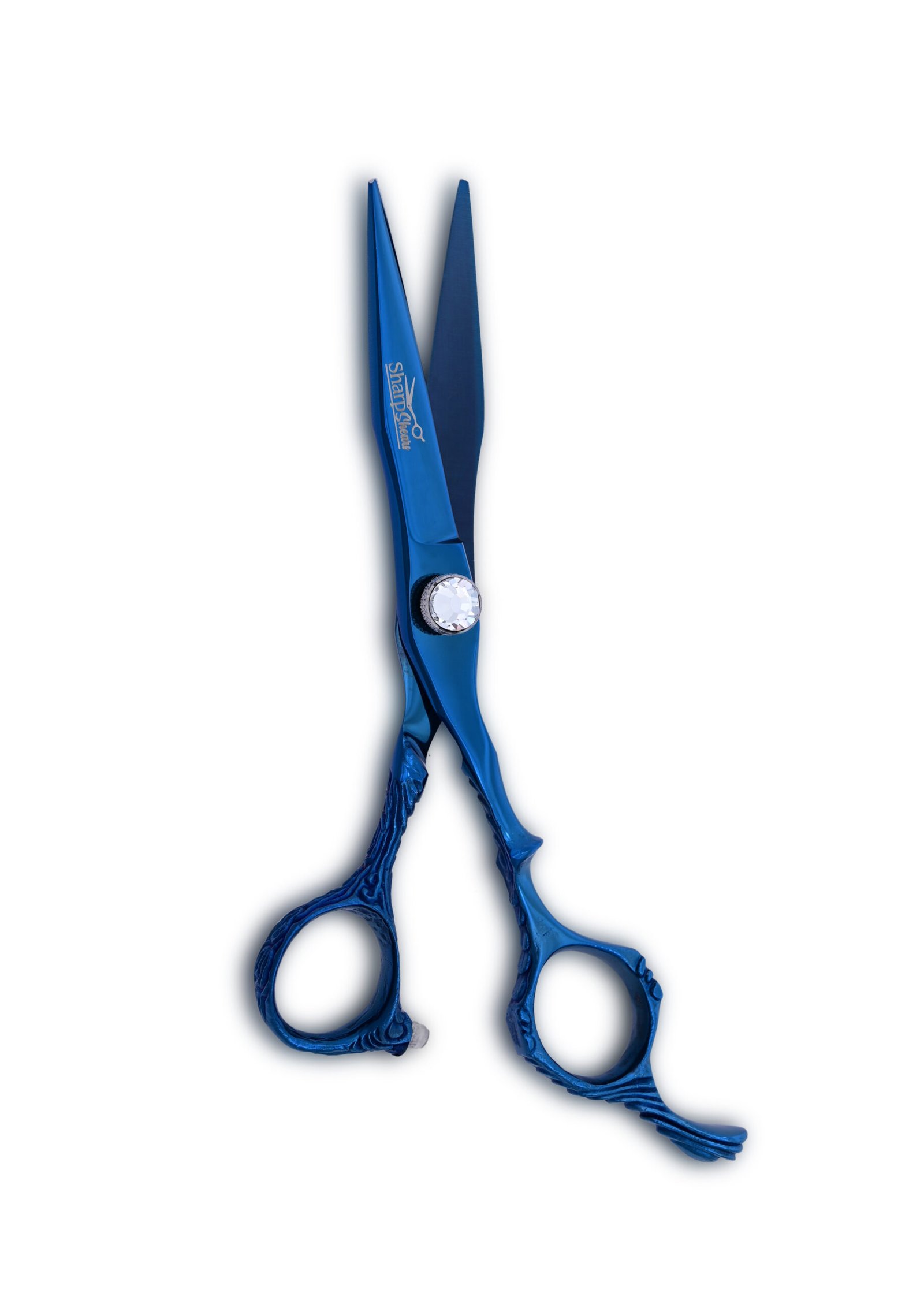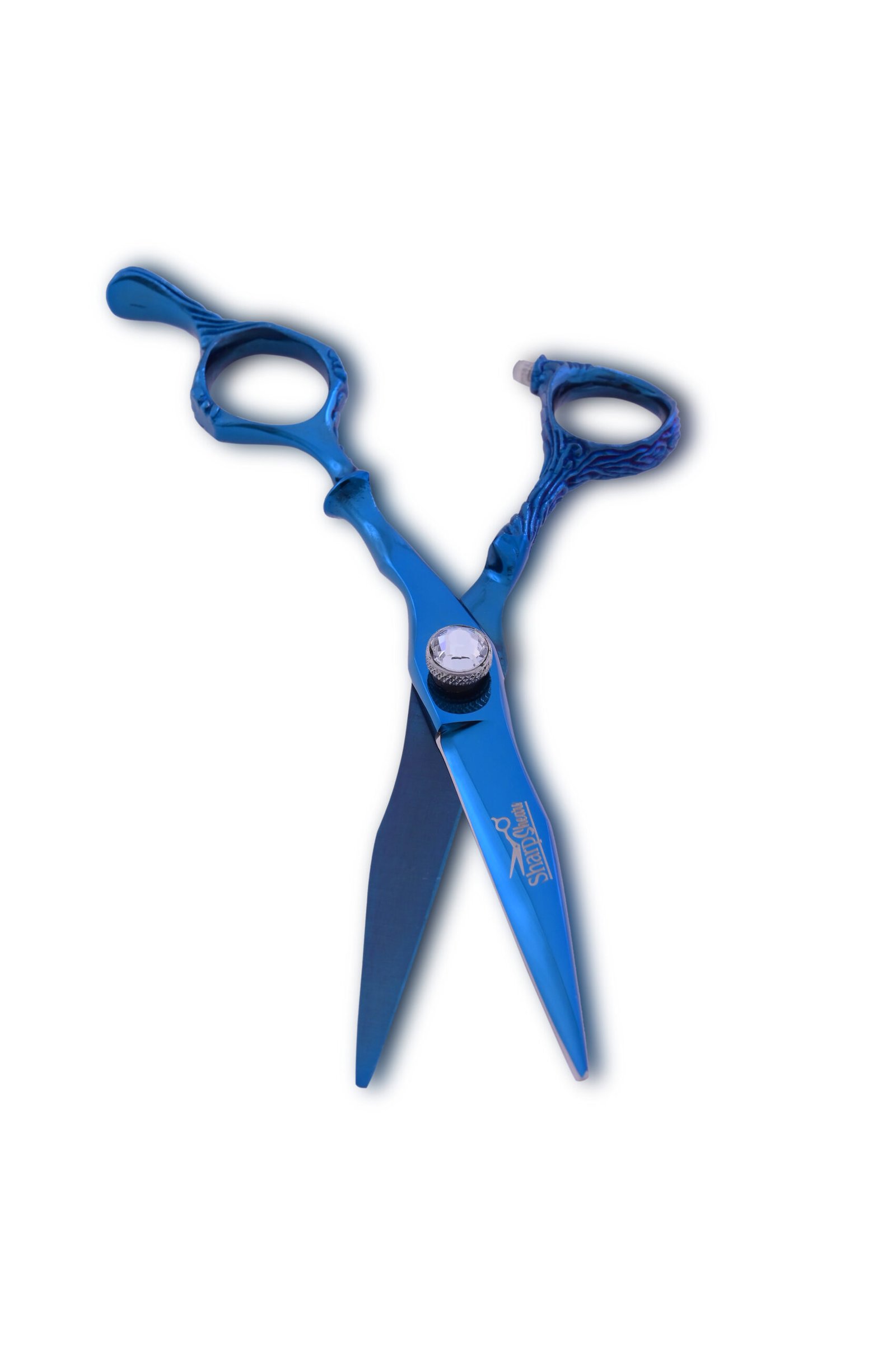 Elevate your hairstyling with our Blue Hair Cutting Shears, crafted from Japanese steel for precision and durability. Featuring an ergonomic offset handle and titanium blue color, they offer comfort, style, and clean cuts with every snip.