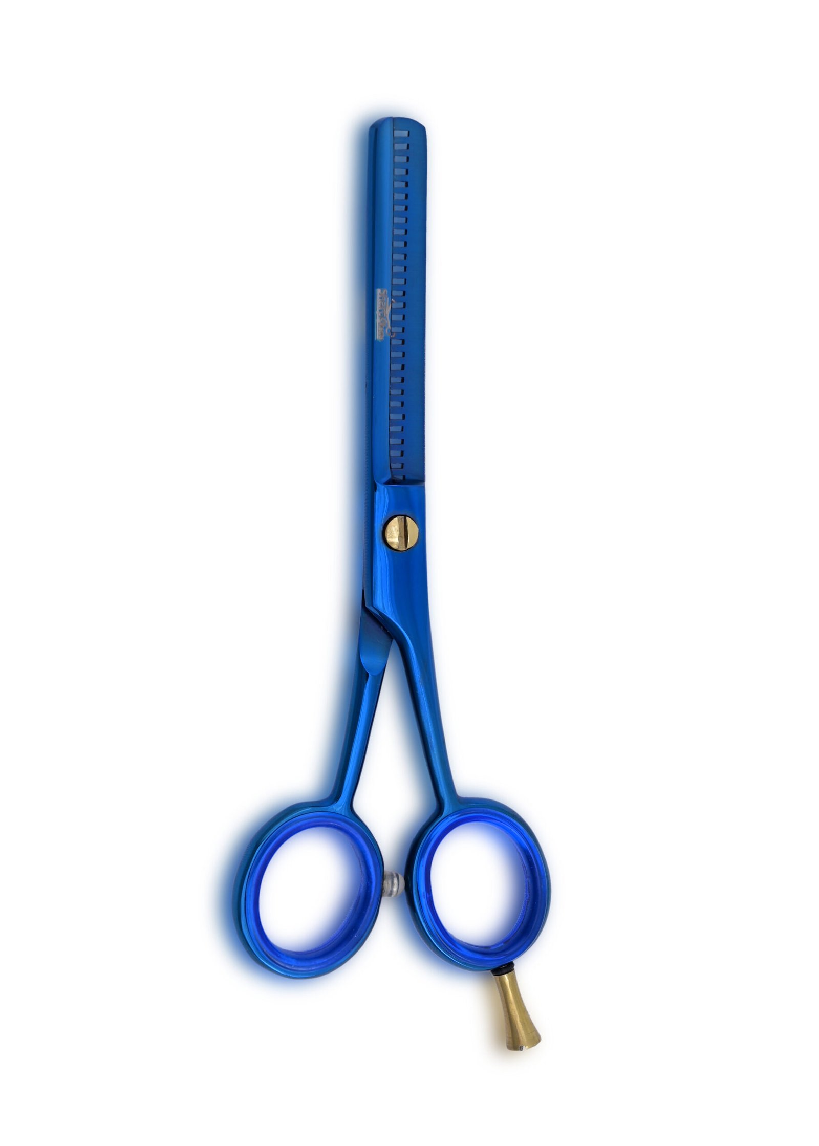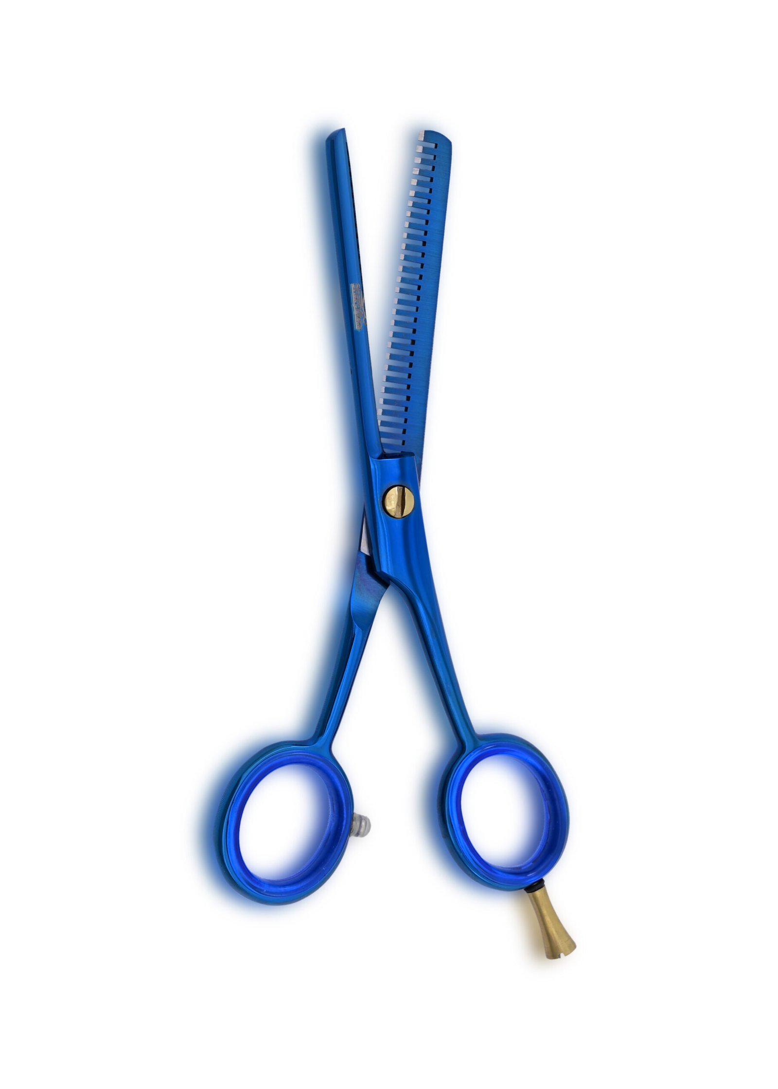 Elevate your hairdressing precision with our Blue Hair Thinner Scissors. Crafted from Japanese steel, featuring 30 razor-sharp teeth and an adjustable split screw for personalized comfort. Also, offering free delivery.