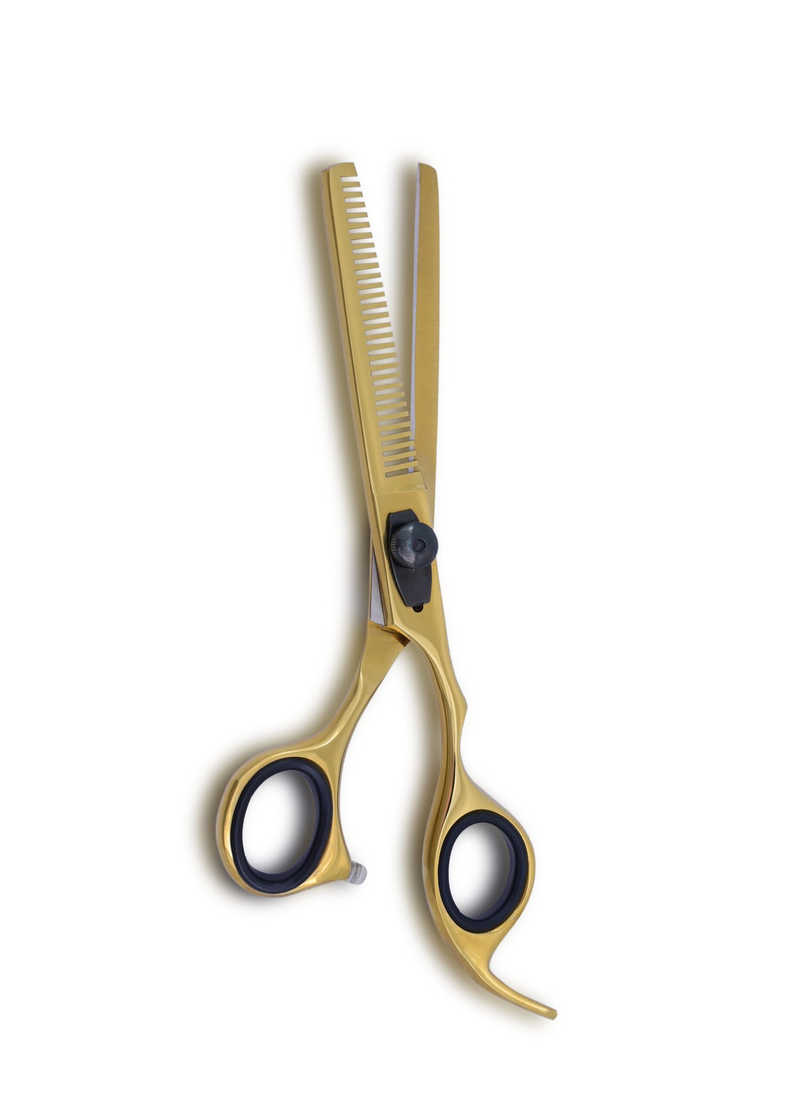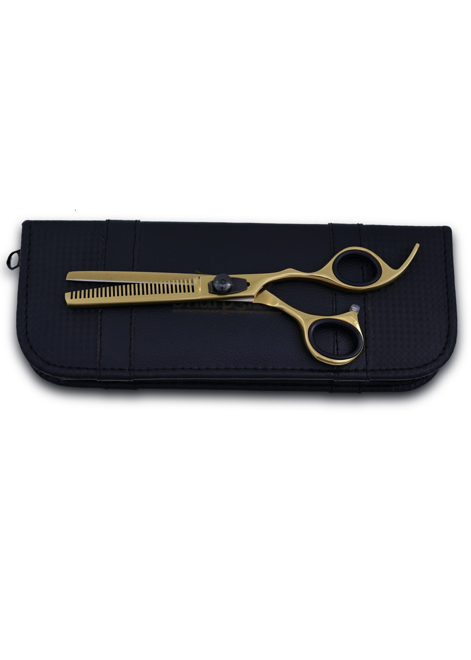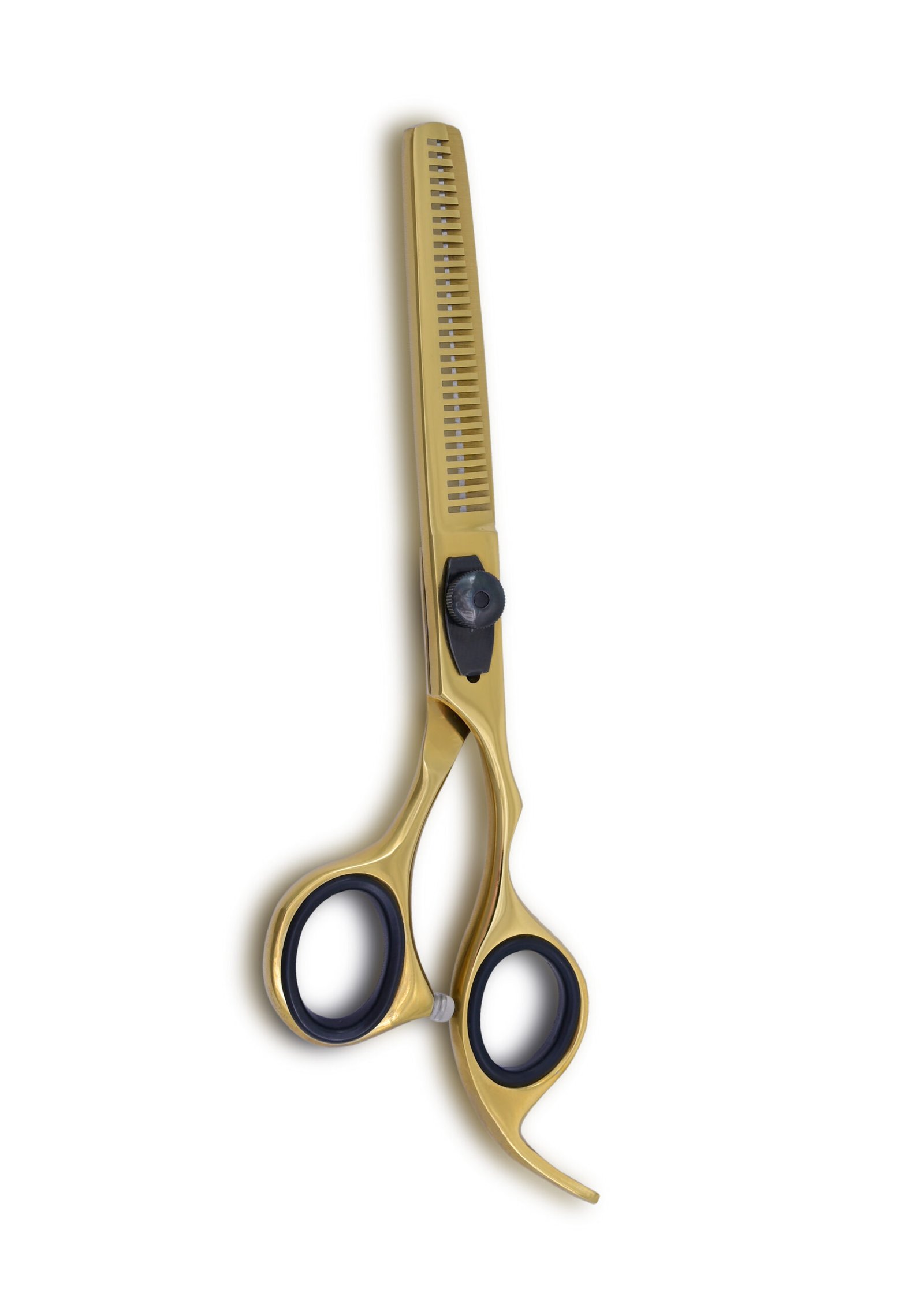 Elevate your hairdressing precision with our gold hairdresser thinning shears . Crafted from Japanese steel, featuring 36 razor-sharp teeth and an offset handle for comfortable use. Plus, offering free delivery.