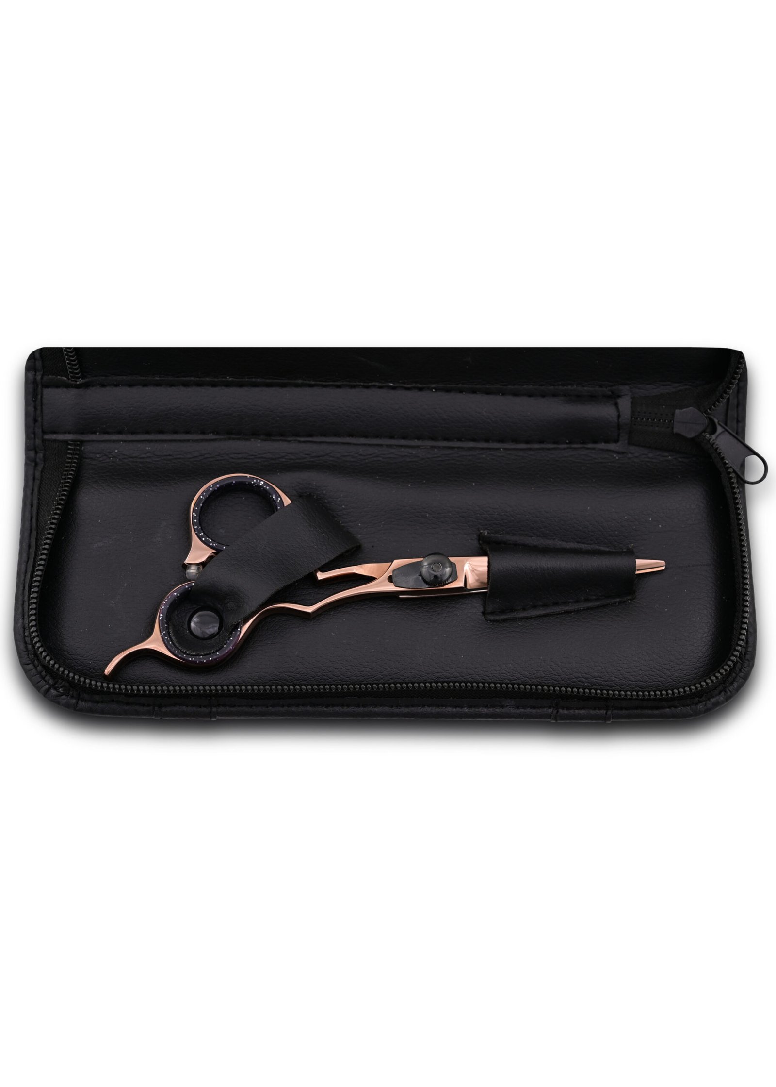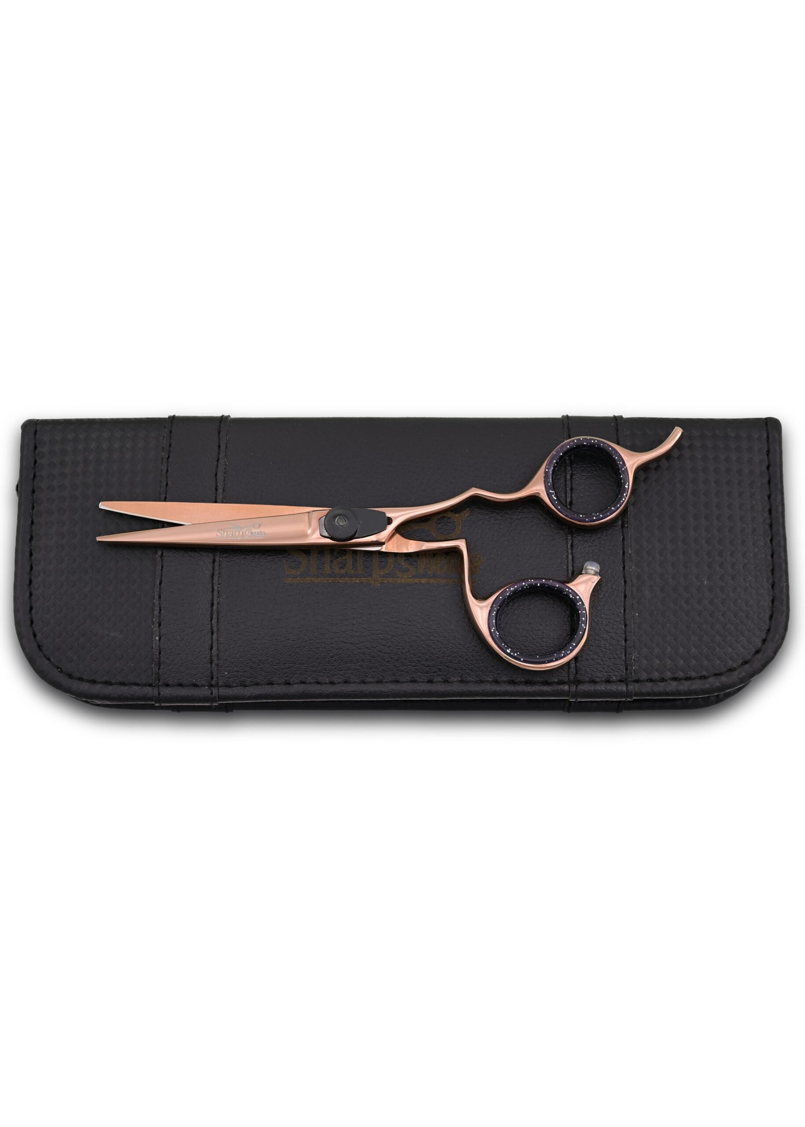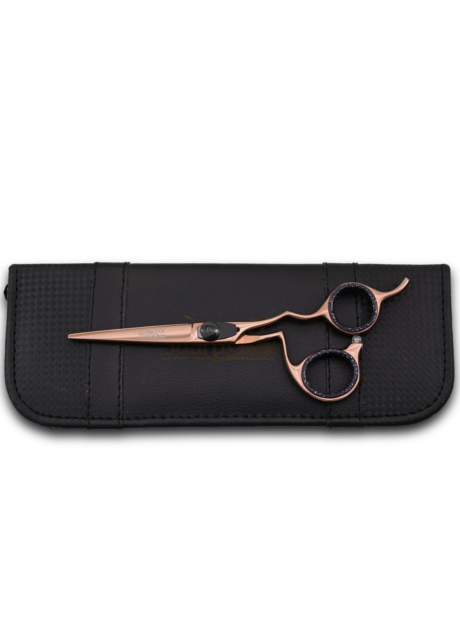 Featuring an offset handle design and a stunning rose gold color. Our hair cutting shears provide comfort and control during use. With a hardness rating of 52-54 and a length of 6.5 inches, they offer optimal maneuverability for achieving precise cuts.
