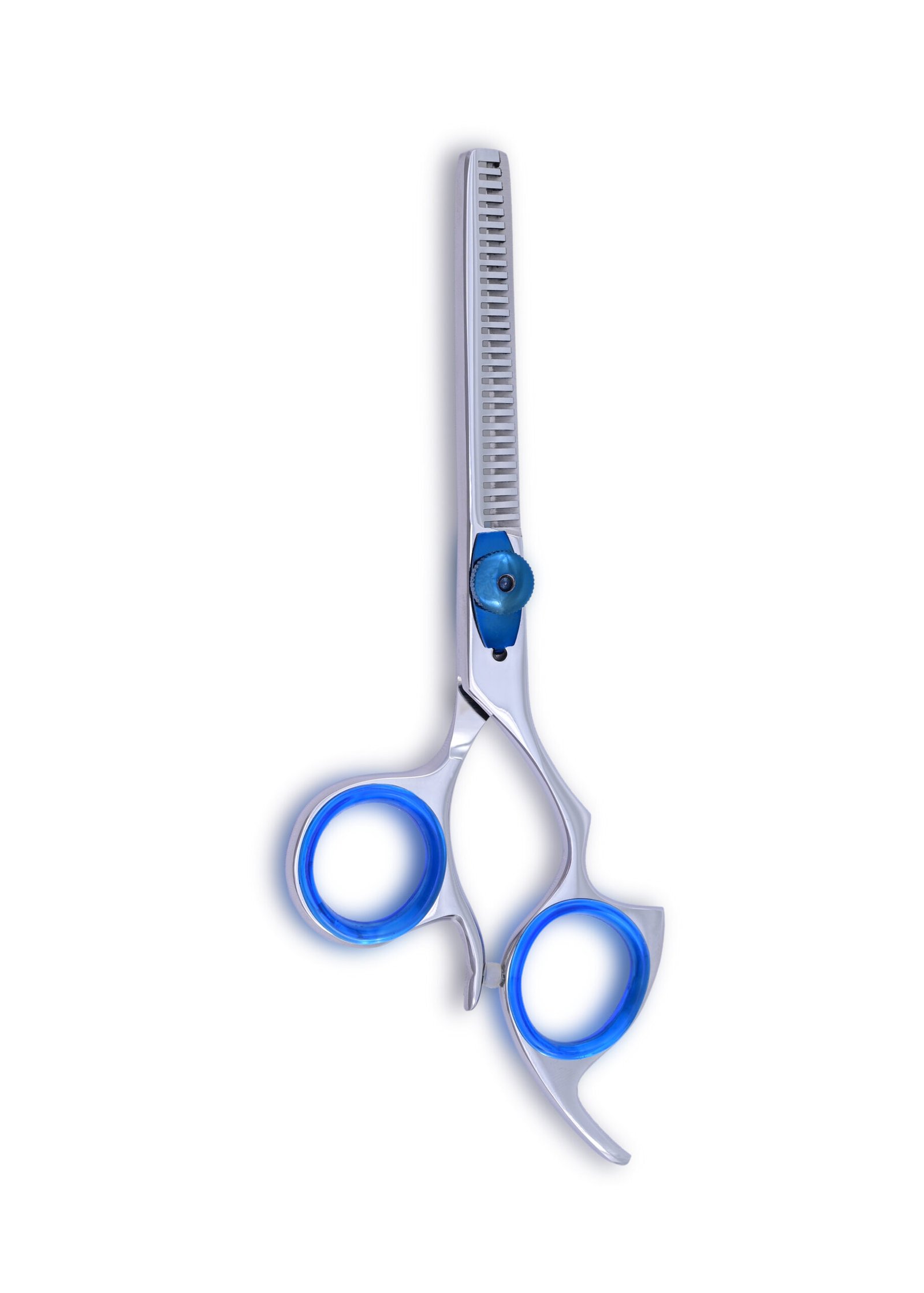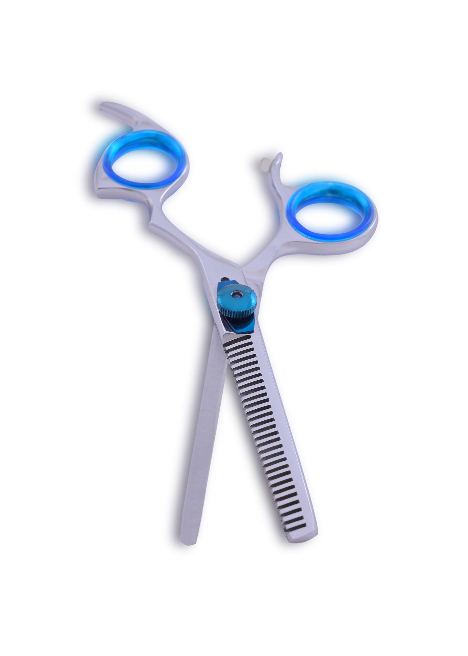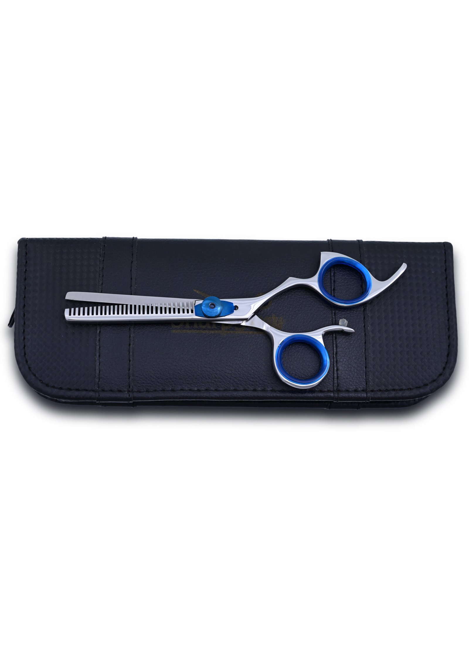 Crafted from premium Japanese steel and steel (J2 420), our Silver Hairdressing Thinning Scissors are meticulously designed to elevate your hairdressing game. Featuring an offset handle type and ergonomic design, these scissors provide optimal comfort and control for seamless thinning and texturizing.
