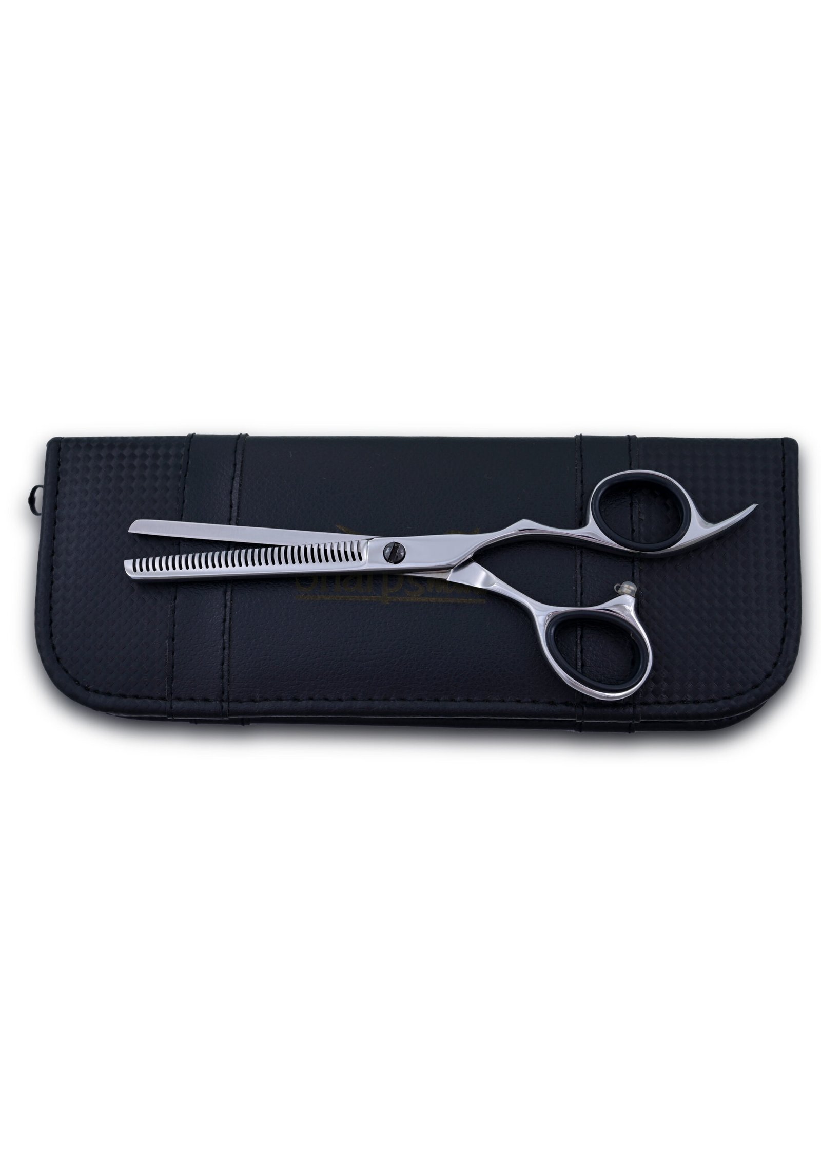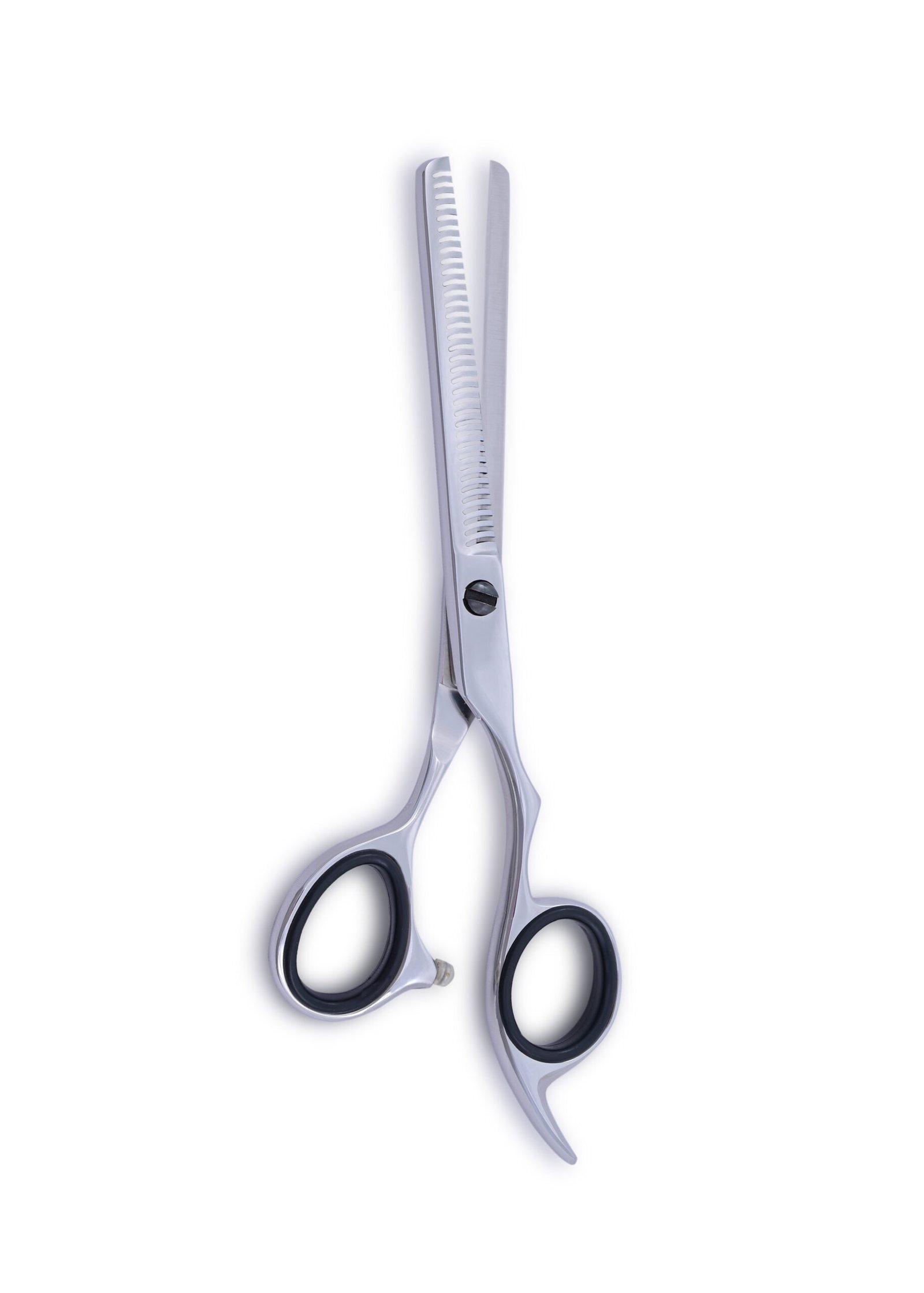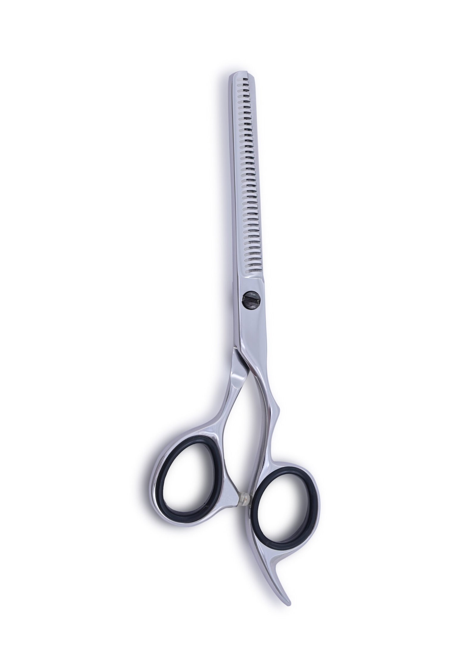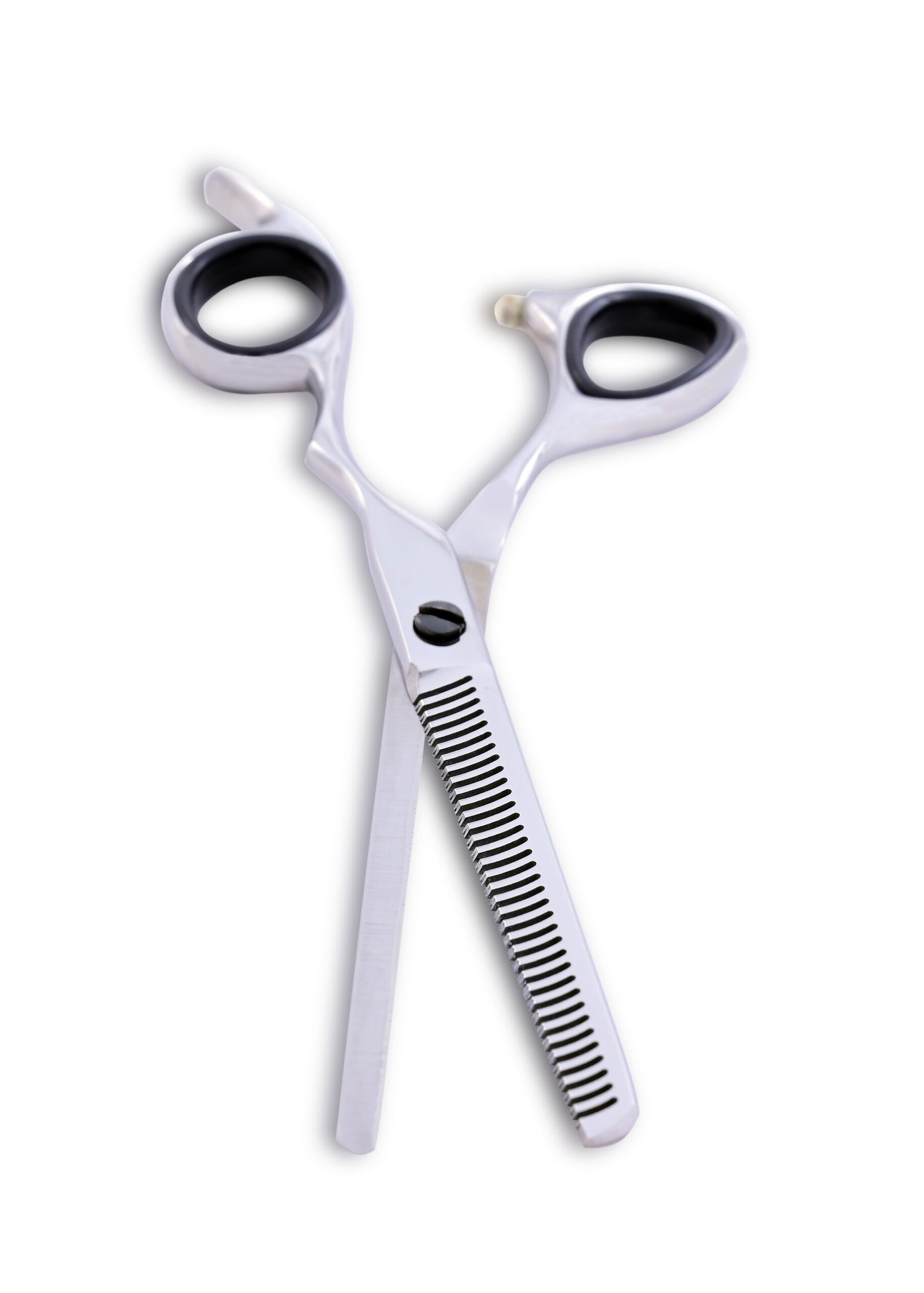 Elevate precision hairdressing with our Silver Thinning Shears. Crafted from Japanese steel, featuring 34 razor-sharp teeth and a split screw for easy tension adjustment. Also avail free delivery.